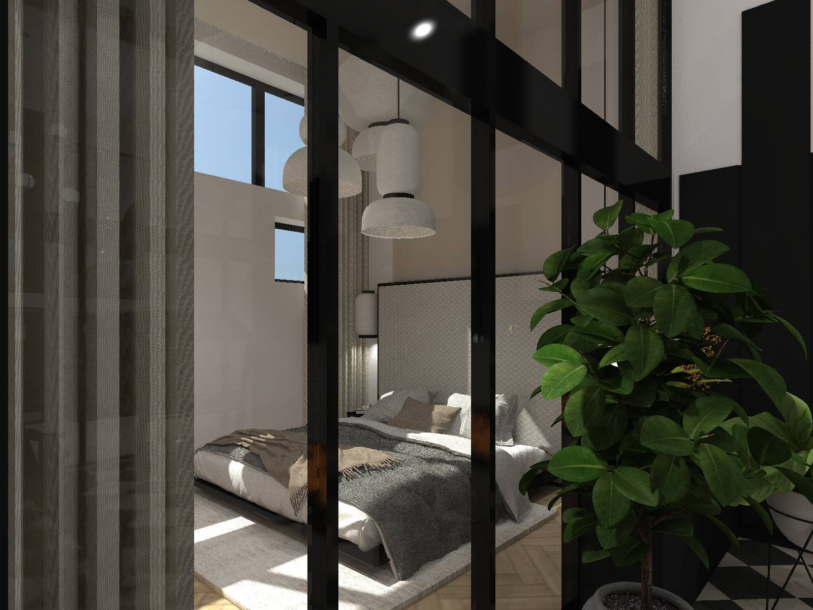 Épurées mais puissantes, elles adoptent une structure en métal noir, rythmée de vitrages rectangulaires. Ce graphisme sobre s’inscrit dans une esthétique minimaliste aux tonalités noir, blanc et beige. Plus que des cloisons, ces verrières deviennent des éléments architecturaux à part entière, qui sculptent l’espace, jouent avec les lignes et subliment la lumière. Elles incarnent un équilibre parfait entre rigueur géométrique et élégance contemporaine.