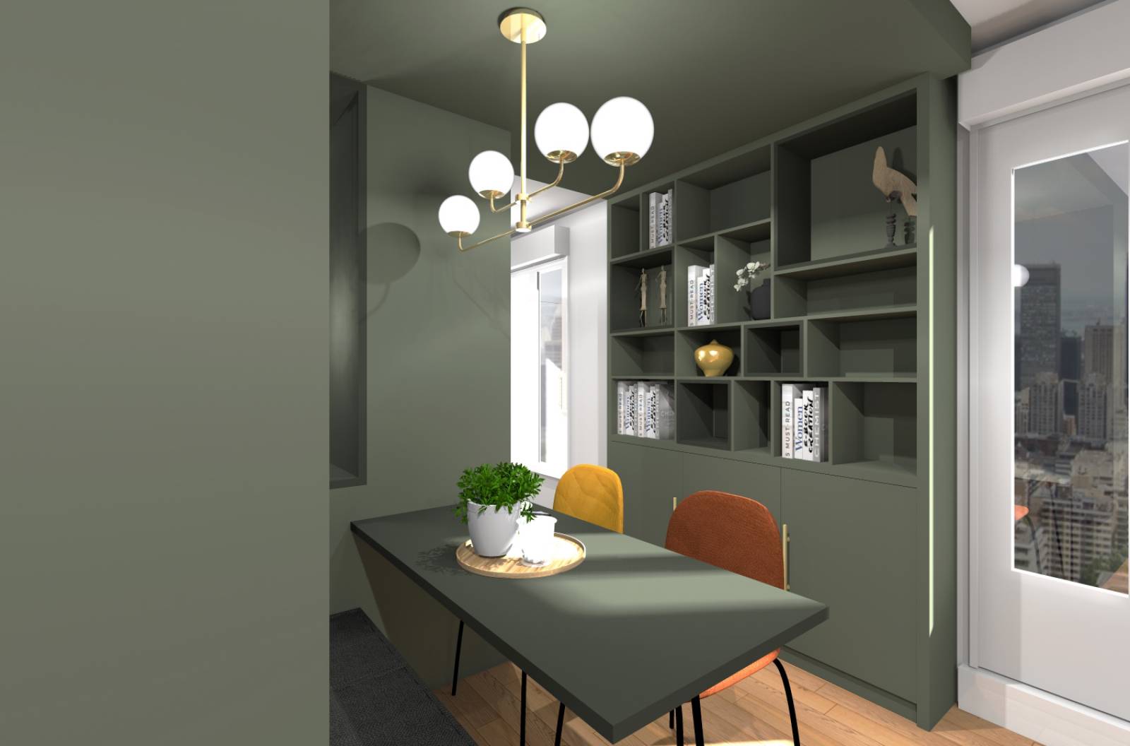 Comment marche notre service de plans d'architecte d'intérieur en ligne ? Tout simplement ! 1° étape : vous nous envoyez des photos et un plan côté de la pièce de votre appartement à rénover à Nice 2° étape : nous échangeons ensemble par téléphone sur vos goûts et vos souhaits d'aménagement et de décoration 3° étape : notre architecte d'intérieur en ligne travaille sur votre projet 4° étape : nous vous remettons un dossier de conception complet avec des plans 3D, comme dans cet exemple.